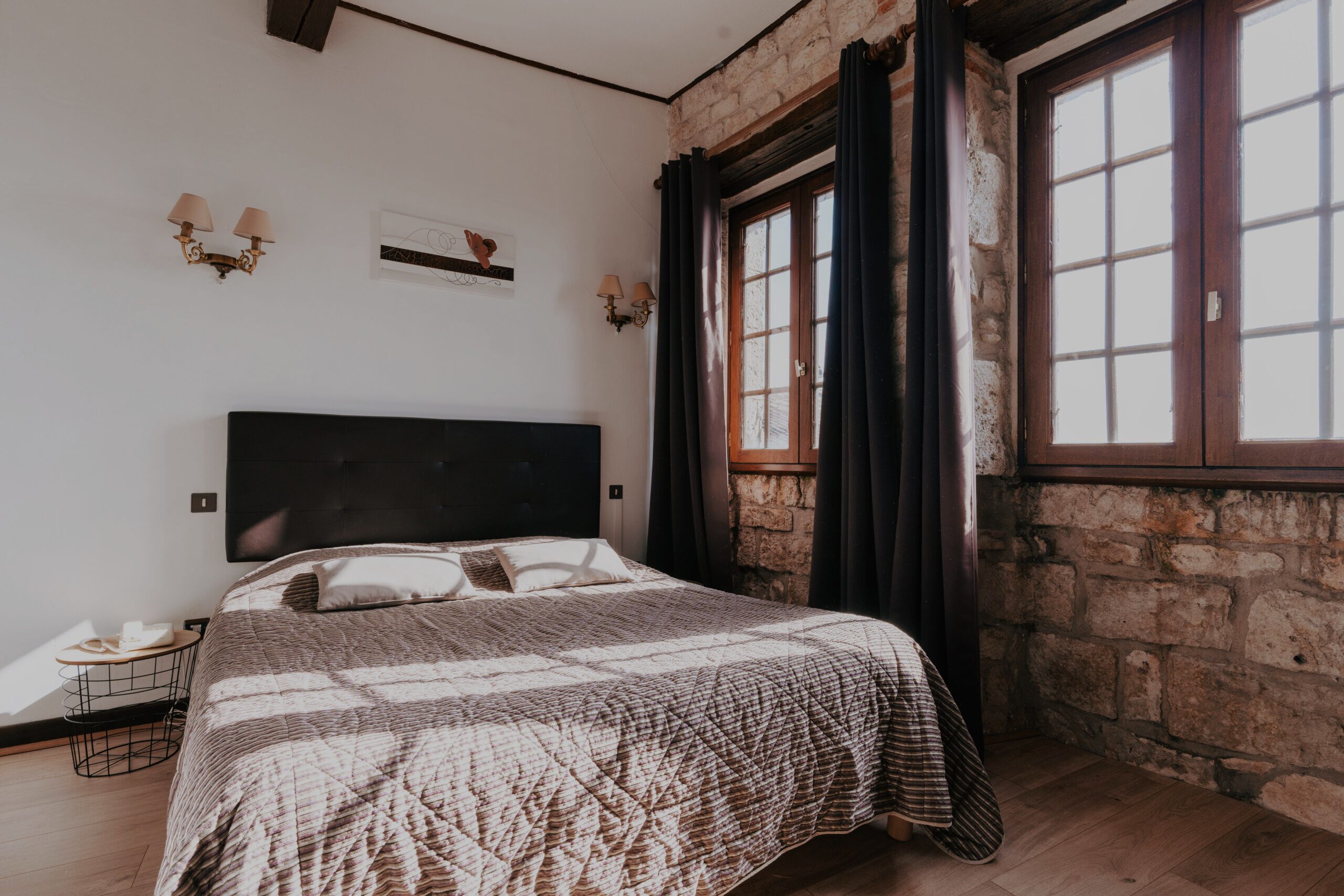 • – Distribuée sur premier et deuxième étage desservi par un ascenseur donnant sur la place des Arcades ou sur la terrasse privative de l’hôtel